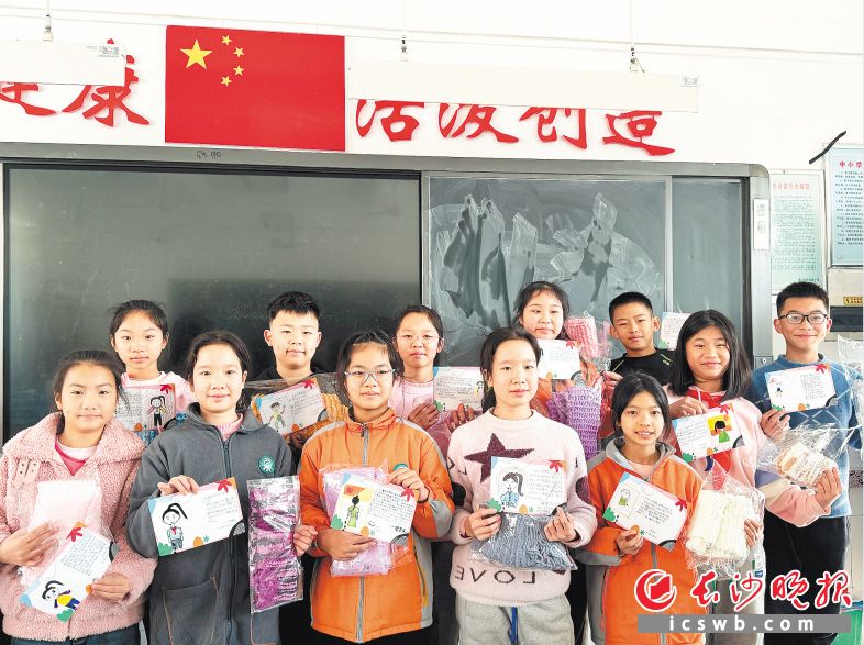 博才阳光实验小学学生编织的围巾和手写的卡片。长沙晚报通讯员 胡巧萍 供图