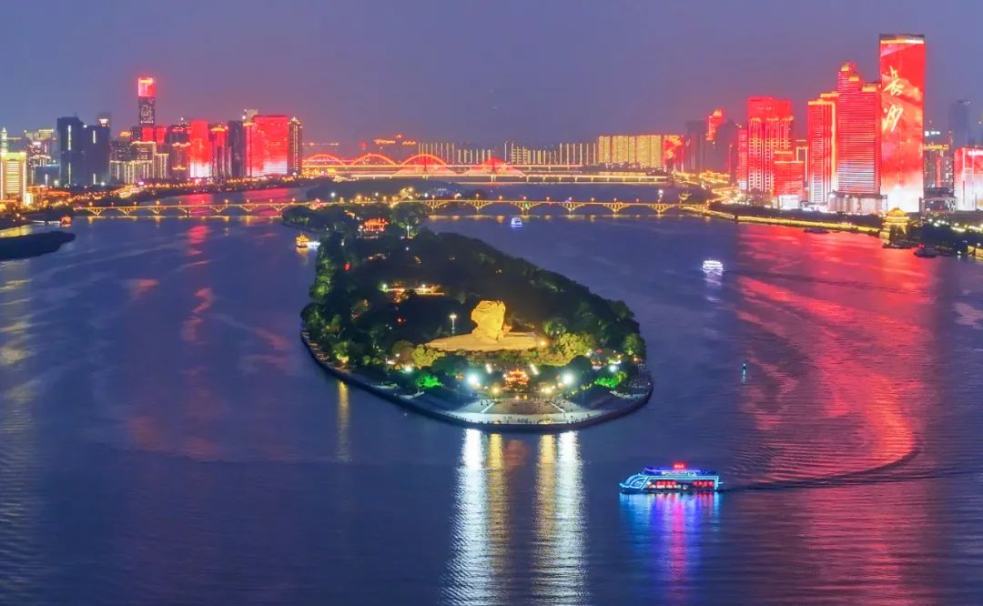 (入夜后的长沙,展现出与白昼不同的璀璨繁华,光影变幻充满诗情画意。)