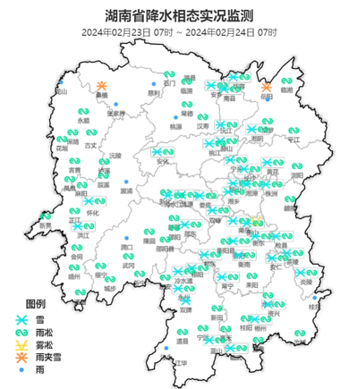 昨天(2月23日)7时至今天7时,全省14市(州)87县(市、区)出现雨雪冰冻天气。