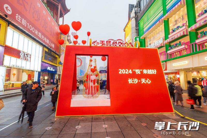 长沙晚报掌上长沙2月7日讯(全媒体记者 陈飞)今天,熙熙攘攘的黄兴南路步行街上,来来往往的行人惊喜地发现,这里新添了几处“人心悦处是天心”的打卡地标,以“2024‘悦’来越好”的美好寓意为大家送去新春祝福。司门口的3D裸眼视频上,“人心悦处是天心”视频持续播放,吸引着众多市民、游客打卡拍照。