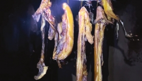 1月31日,金龙村,村民为过年准备的腊肉。