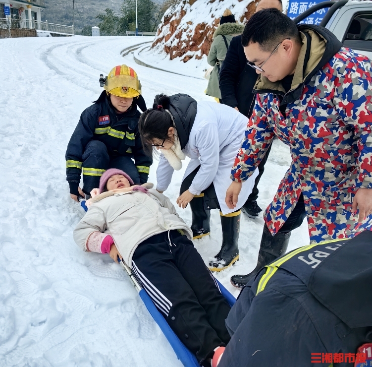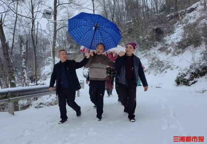2月4日凌晨4时,张家界市慈利县南山坪乡盐市村一名36周+的孕妇突然羊水破裂,情况十分危急。而此时,因持续低温雨雪冰冻,高寒山区的盐市村已积雪严重,车辆根本无法通行。