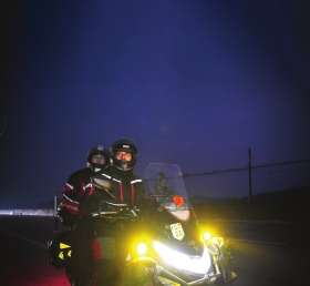 骑摩托带妻子跨越680公里回乡