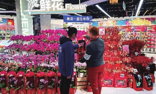 花卉市场外,盒马花园、都市花香等连锁品牌也推出了多款年宵花。如,盒马花园将长沙人过年必买的红色银柳设计成“福桶”。“福桶以红色银柳、红果为主材料,桶身‘神龙盘踞’,再挂上福袋、红灯笼,寓意满满,年味十足。”盒马鲜花采购负责人履言提到,今年1月,红火喜庆、寓意较好的“口彩花”,如蝴蝶兰、银柳、冬青、腊梅等开始热销,销量环比增长超七成。