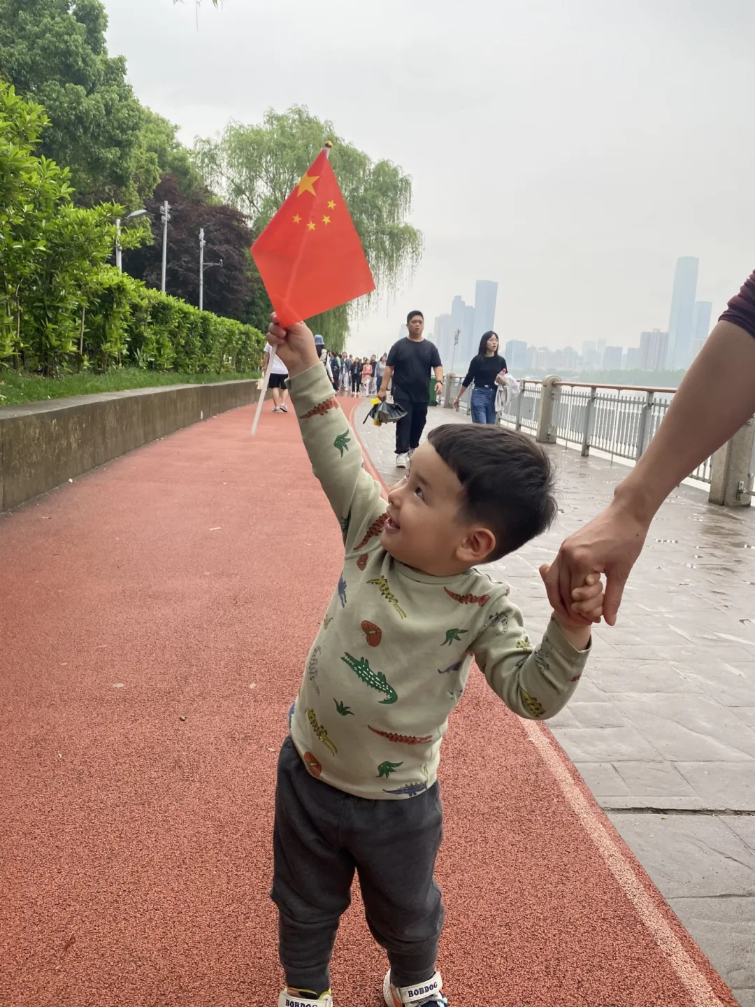 (两岁的小伊森跟妈妈在橘子洲头游玩。侃财君 摄)