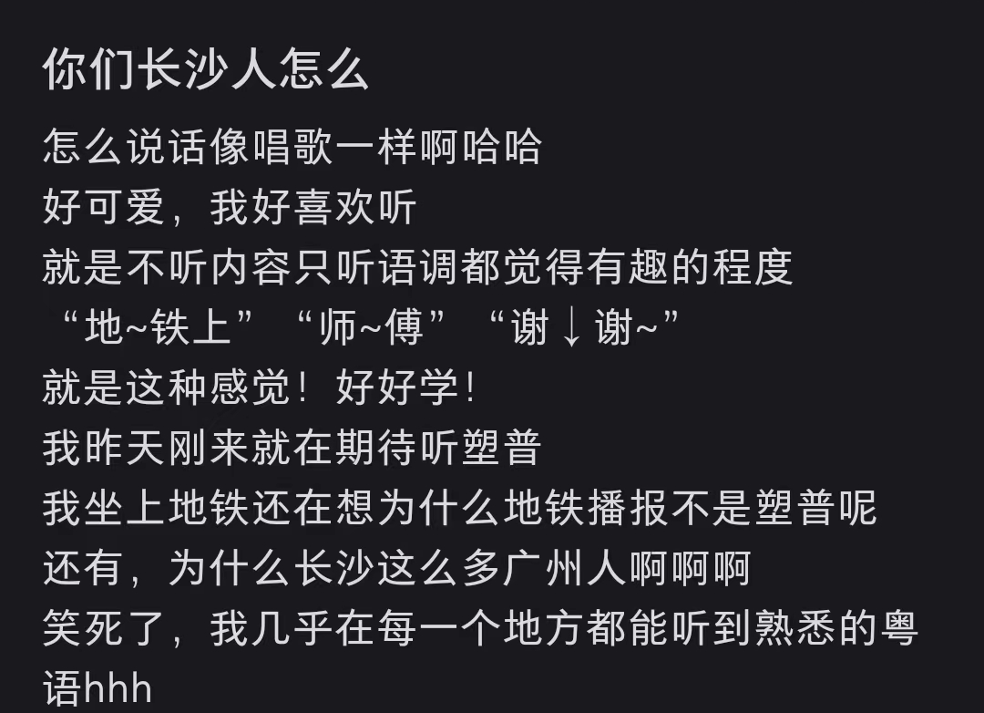 其实,除了长沙人到处都能听到粤语,广东的朋友也很期待听到“塑普”!甚至有广东人表示很喜欢听塑普,说话语调像唱歌。