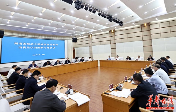 华声在线4月1日讯(全媒体记者 孙敏坚 黄晗)1日下午,省委副书记、省长毛伟明主持召开省政府专题会议,研究部署推动大规模设备更新和消费品以旧换新工作。他强调,要深入贯彻习近平总书记在湖南考察时的重要讲话和指示精神,落实国务院相关会议要求,突出我省优势产业、优势产品“两优”主攻方向,释放大规模设备更新和消费品以旧换新“两新”政策最大效应,为持续用力打造“三个高地”、推动高质量发展提供有力支撑。