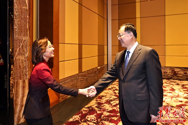 苹帕达·威猜军高度赞赏中国及湖南的发展成就。她说,“泰中一家亲”,泰中地缘相近、人缘相亲、产业相融,合作潜力无限。泰方将积极响应中国“一带一路”倡议,希望与湖南在装备制造、贸易投资、新能源、人文旅游等领域深化交流合作,共同助力泰中命运共同体建设。