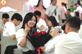 “小梦,一颗心只属于你一个人。”“今天,我要向我最爱的TA表白!”“妈妈我爱你,你陪我长大,我养你到老。”……活动现场,浪漫的情歌环绕耳旁,无人机在低空穿梭,让爱意从天而降。越来越多的市民也被现场的氛围感染,纷纷参与到活动中来,将领取的玫瑰送给身边人。