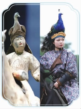 “孔雀冠击鼓骑马女俑”复原图。