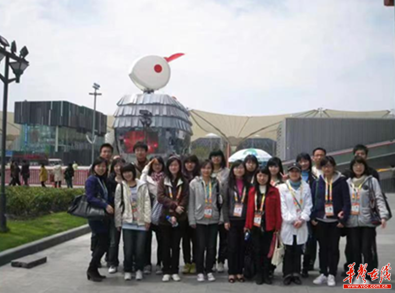 (在世博会中国馆与华师大志愿者的合影)