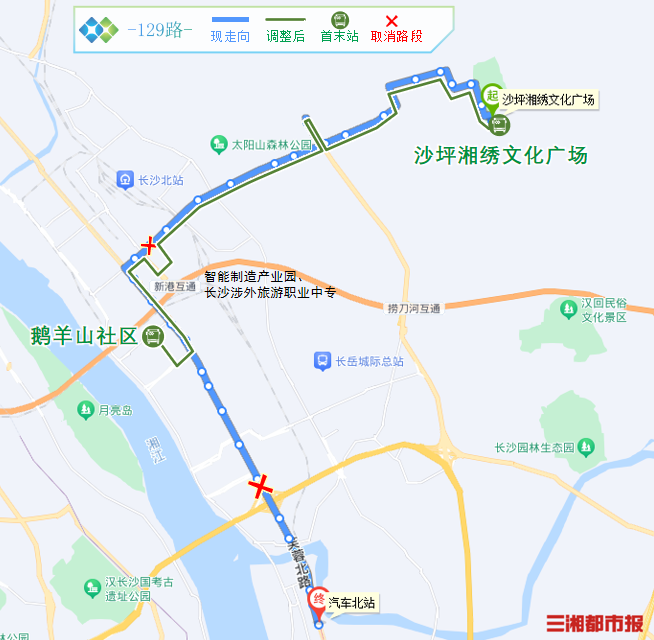 三、129路:沙坪湘绣文化广场至鹅羊山社区(原沙坪湘绣文化广场开往汽车北站)