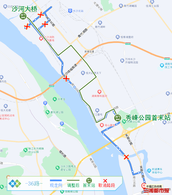 四、36路:沙河大桥至秀峰公园首末站(原沙河大桥开往开福区政府南)