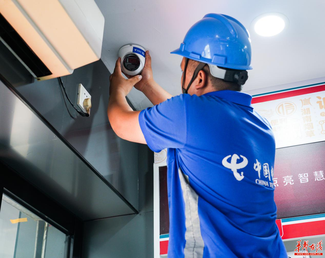 装维人员为苏立志的便利店安装摄像头。彭福宗摄