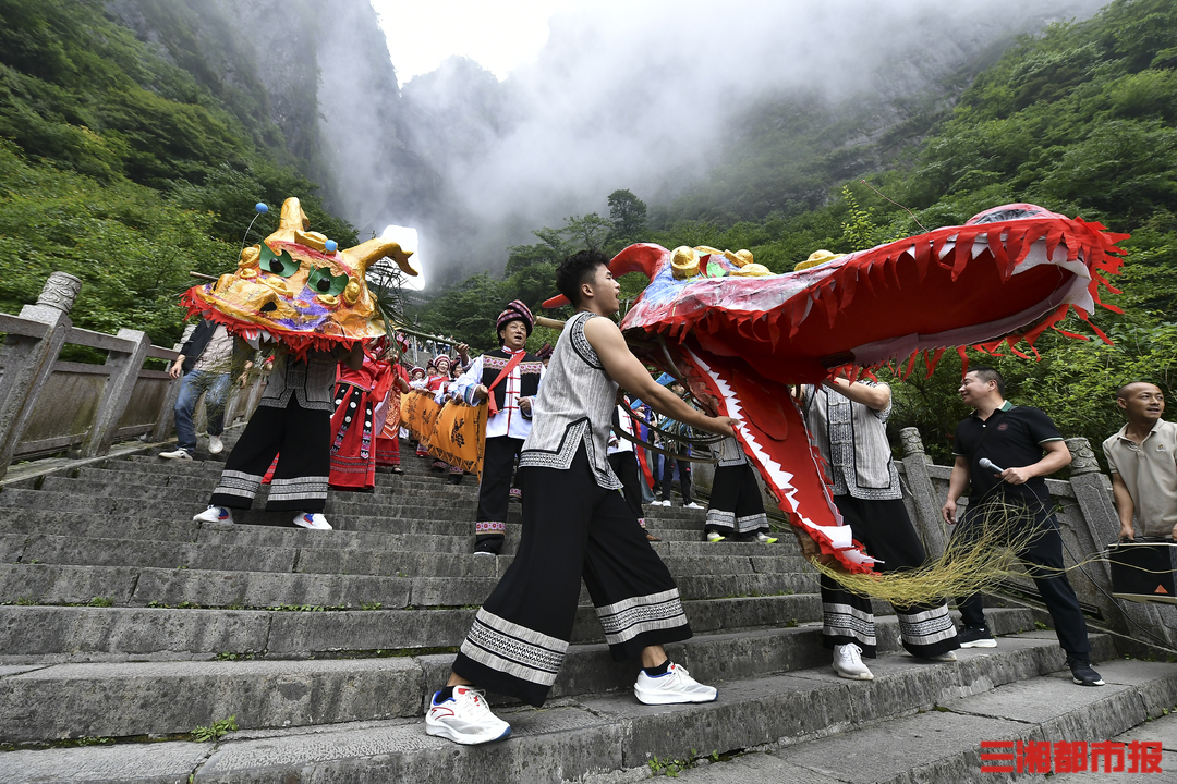 端午假期,张家界天门山举行“梭地龙”非遗展演。景区供图