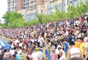 6月1日下午,预赛第二轮,潇水河岸上挤满了观众。