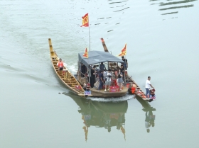 6月3日,湖南道县本土龙船赛结束次日,获得第6名的白马渡镇青口村青龙一队带着龙船走20多公里水路回村。途经白马渡镇,队员们将早已准备好的鞭炮放至船尾,并拿出获得的奖杯、奖状至船头,向岸上的居民展示。等待许久的居民也用鞭炮热闹迎接。沿岸还有东门街道,大阳村等相邻居民等待着,和船上的队员们用鼓声、鞭炮声呼应。“这是我们道县本地的习俗,他们用这种方式向我们表示庆祝。”队员介绍道。