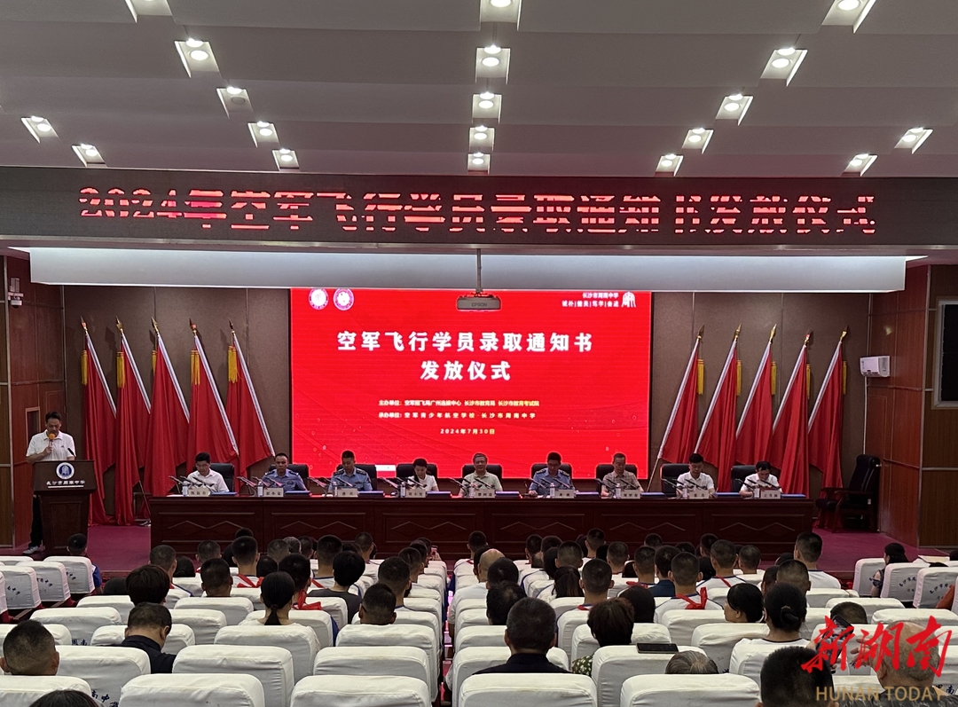 华声在线7月30日讯(全媒体记者 刘镇东 通讯员 胡思蕊 刘东芝)“热爱祖国,崇尚荣誉;向往空军,献身飞行……矢志成为一名优秀空军飞行员,努力为实现强国梦、强军梦、空军梦不懈奋斗!”7月30日,在长沙市周南中学2024年空军飞行学员录取通知书发放仪式上,34名身披绶带、胸佩红花的该校2024届航空班学员许下铿锵誓言,接过接过空军飞行学员录取通知书,正式踏上逐梦空天的新征程。