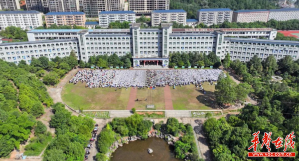 耒水回环,青麓迥澜。当清晨第一缕阳光照射在北纬26度的油茶之乡,东山、西山如螺如芥,在缥缈的云雾里互相凝眸。拾阶而上,蜿蜒耒水、青葱校园便尽收眼底。两栋长达240米的教学楼恢宏素雅,如鲲鹏击水,展翅图南。