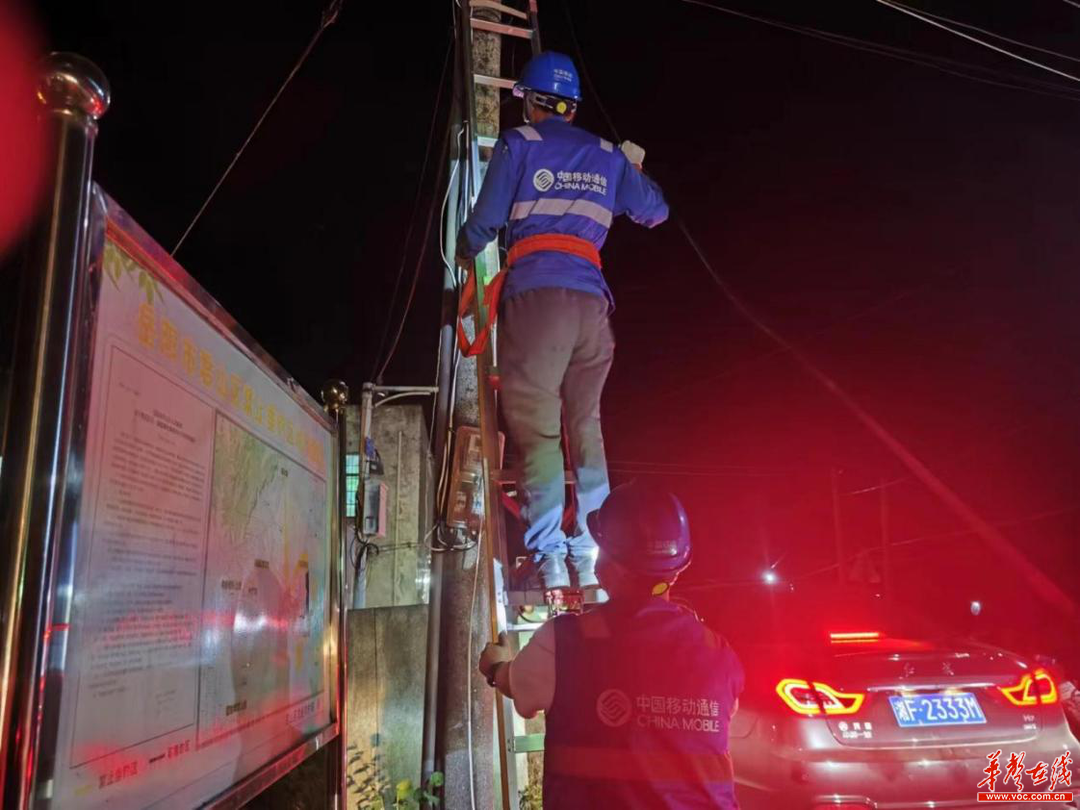 (湖南移动党员突击队紧张有序在现场抢修光缆 通讯员供图)