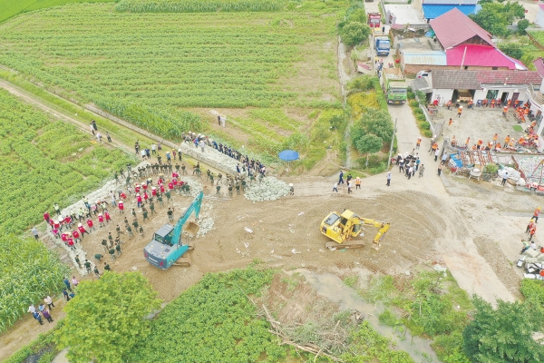10时30分许,记者在小凡洲村抢险现场看到,前来支援的太子庙镇群众,在该镇党委副书记、镇长粟龙的组织下,干劲十足。“这群抢险人员平均年龄超55岁,组织严密,经验丰富。”
