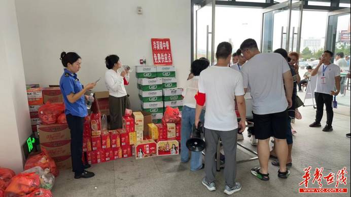 (新化县交通运输局为滞留旅客发送食品物资。通讯员供图)