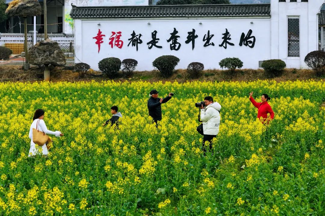 游客在长沙市望城区茶亭镇九峰山村油菜花海拍照休闲。湖南日报全媒体记者 徐行 摄