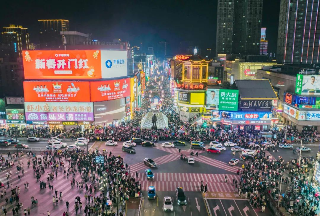 长沙市黄兴南路商业步行街前车水马龙、人潮涌动。湖南日报全媒体记者 李健 摄