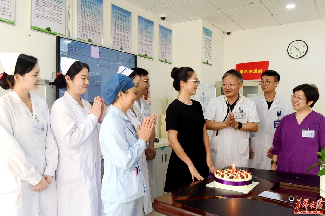 华声在线8月16日讯(全媒体记者 邹伟瑜 通讯员 范憬怡 刘明辉)“祝贺我们的老朋友陈娟迎接‘新生’十周年,非常感动你能在医师节即将到来的这个特殊时刻回院看望我们,看到你现在这么好的状态真心为你高兴,相信你的未来也一定会越来越好!”8月15日,一场简单而特殊的“生日聚会”在中南大学湘雅二医院心血管外科医生办公室浓情上演,心血管外科主任医师唐浩代表医护人员向“寿星”陈娟送上真心祝福。