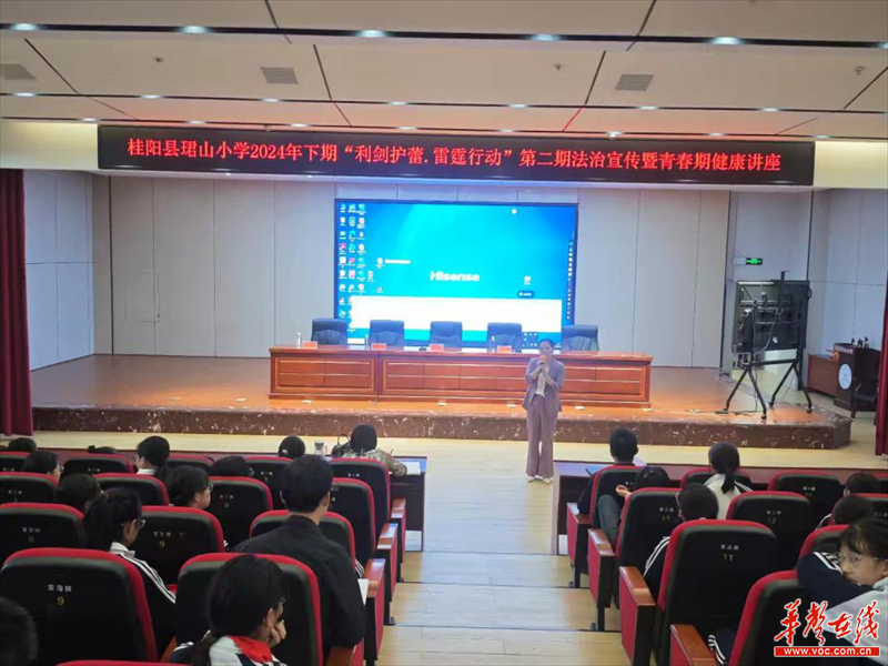 华声在线9月24日讯(通讯员 胡雅琪)为更有效地增强未成年人的法治意识与自我保护能力,扎实做好未成年人保护工作。9 月 23 日,桂阳县珺山小学顺利开展了“利剑护蕾,雷霆行动”第二期法治宣传暨青春期健康讲座。此次活动,学校特邀桂阳县司法局党组成员、政工室主任兼珺山小学法治副校长李衍斌,公安局、机关党委副主任王春艳,桂阳妇幼健康教育科主任李淑珍,以及桂阳志浩律师事务所律师、珺山小学法治辅导员欧阳忠海,为该校五、六年级女生进行授课。