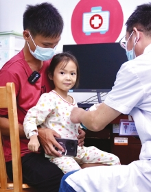 杨仁登带女儿来湖南省儿童医院做检查。组图/记者肖天健