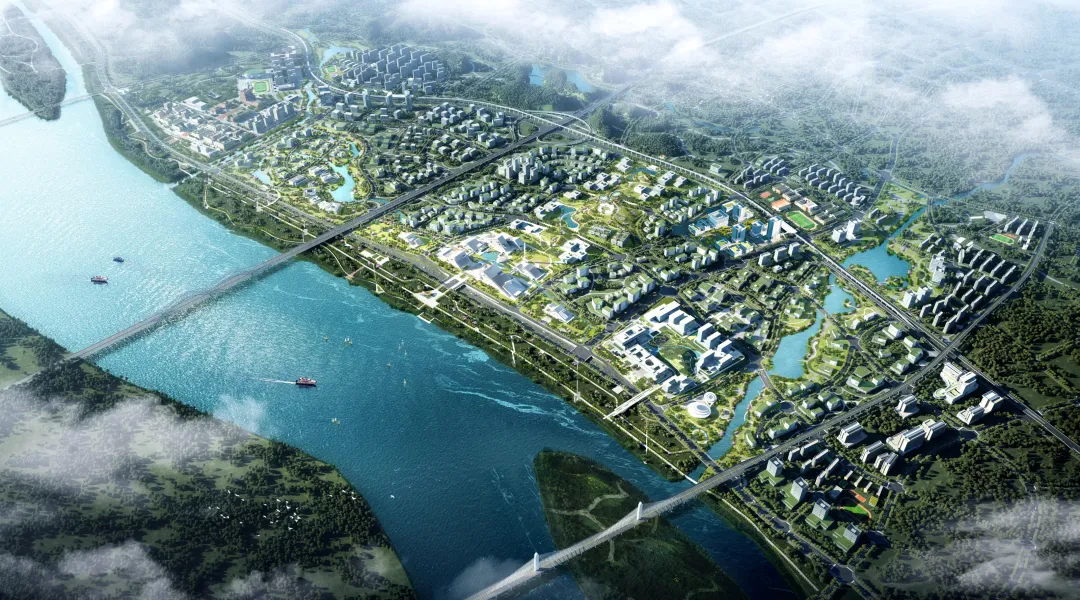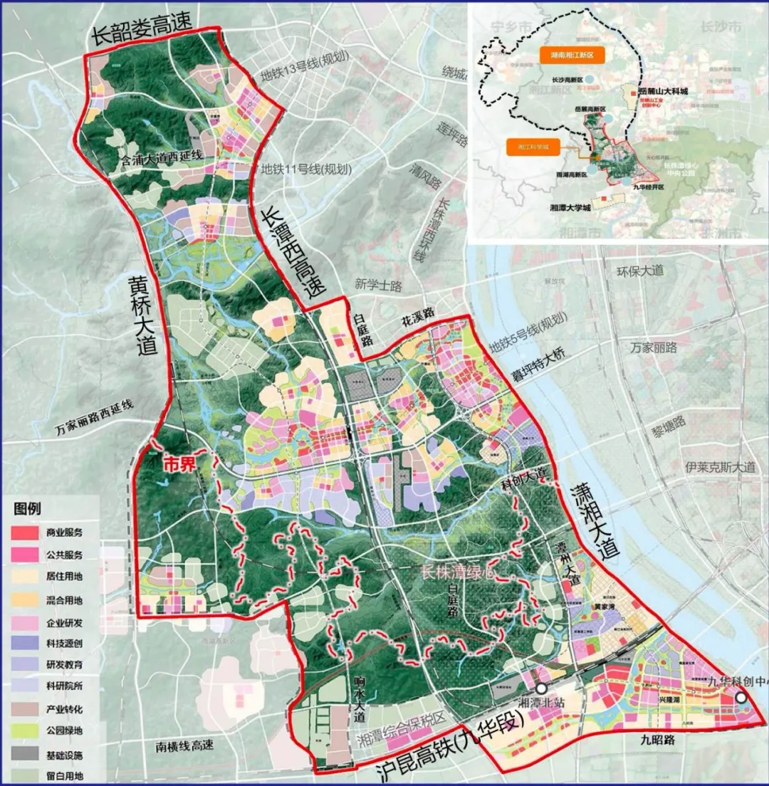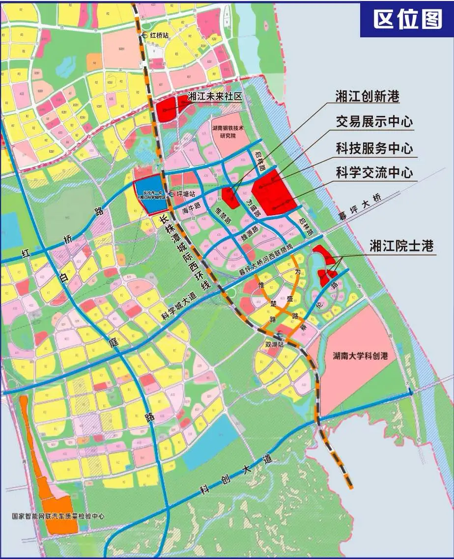 湘江科学城,位于长株潭都市圈“桥头堡”位置,纳长株潭绿心,跨越长沙、湘潭两市,位于湘江西岸、湘江新区南部。