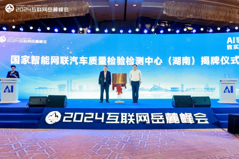 9月9日上午,2024互联网岳麓峰会“AI驱动 数实融合”分论坛,国家智能网联汽车质量检验检测中心(湖南)揭牌。