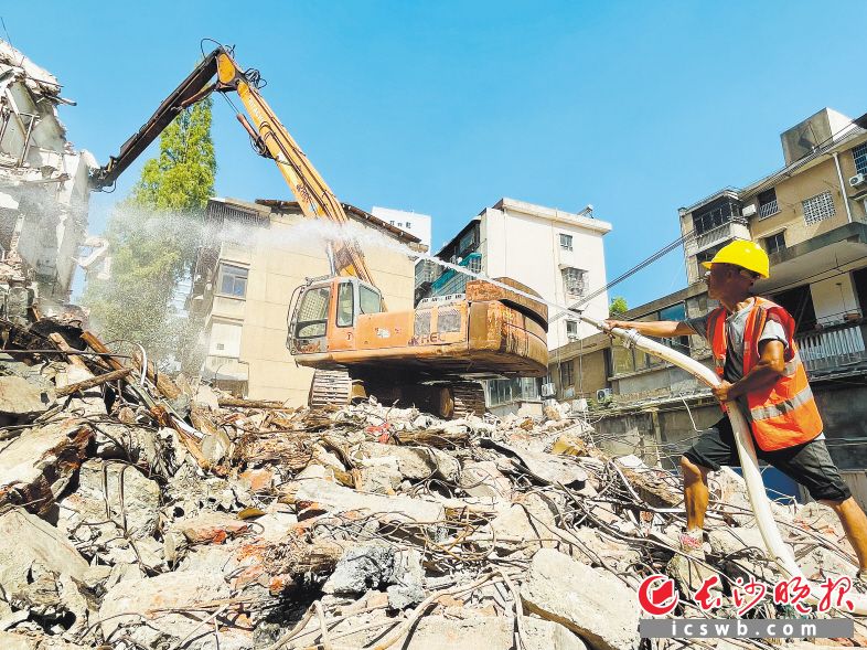 烈日下工人加快施工,让搬出危房的老人们早日安居。 长沙晚报全媒体记者 李卓 摄