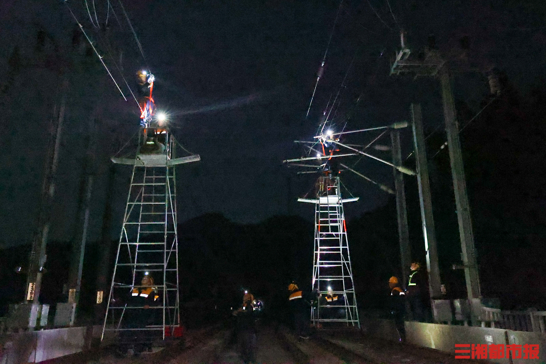 华声在线1月19日讯(全媒体记者 李致远 通讯员 王小燕 雷凯 贺无忌)“各小组注意,所有地线已全部接挂完毕,可以开始作业。”1月17日0时2分,对讲机里清晰地传来工作负责人的声音。48岁的李勇当晚的任务是前往郴州西至乐昌东区间石盖塘,对接触网进行平推检查。