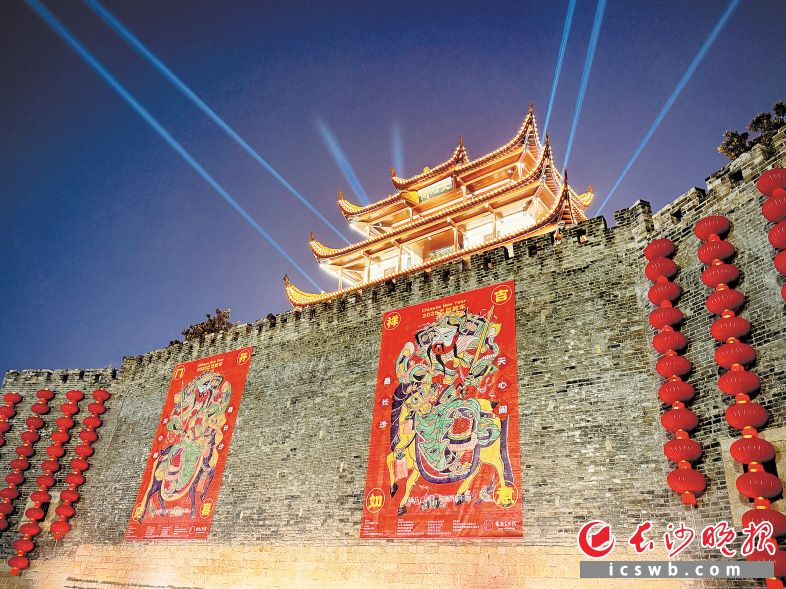 长沙晚报1月23日讯(全媒体记者 肖舞)连日来,长沙沉浸在新春将至的喜庆氛围中。23日晚,一场极具文化底蕴与创新活力的盛会——“非遗点亮星城 福气迎进万家”活动启幕,天心阁、岳麓山、杜甫江阁、都正街、白果园、古浏阳门、湘江欢乐海洋公园等近10个文化地标和标志性景点,一日之间为长沙披上了非遗华裳——巨幅年画,成为市民游客瞩目的焦点。