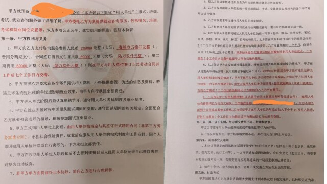 林女士介绍,去年年初,自己浏览某短视频社交平台时发现,长沙一家人力资源公司宣称可以安排国企、央企、事业单位的工作岗位,于是进行了联系。对方工作人员承诺,支付大约14万元,就能进入当地某国企工作,成为正式员工。林女士随后支付了前期费用大约7万元,并与公司签订了一份所谓的“就业安置协议”,约定3个半月内完成工作安置。