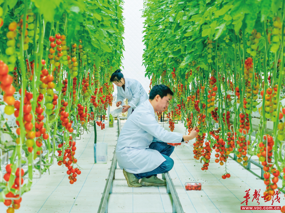 2月28日,东安县华维节水科技装备(湖南)有限公司高标准中试中心,工人在采收番茄。该公司是一家农业装备研发、智能制造公司,为国家高新技术企业、湖南省专精特新“小巨人”企业。公司建成的高标准中试中心,为当地农业高质量发展提供了精准示范。