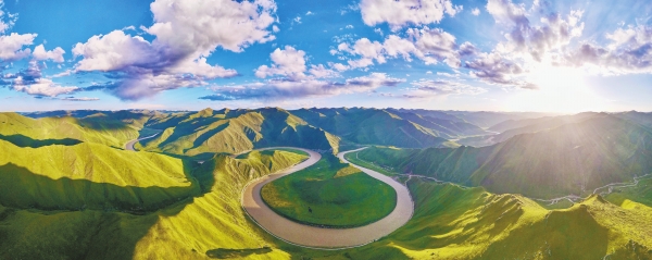 黄河流经甘肃玛曲县的七仙女峰景区。玛曲县融媒体中心记者 杨平 旦知刀吉 摄