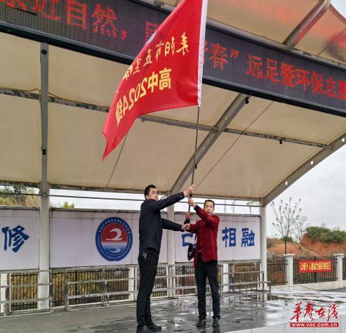 清晨,远足队伍在学校操场整齐列队,蓄势待发。副校长雷秀恒在动员讲话中希望同学们用坚实的脚步丈量家乡的土地,用明亮的双眼尽情欣赏春天的美景,更要用心去体会团队的力量,感受同学们之间真挚的情谊。高一年级主任谢志明强调了安全纪律和团队文明意识。H2413班刘逸丞同学代表全体高一同学表示将发扬学校“乐观进取,吃苦耐劳精神”,以激情与勇气为青春留下辉煌的印记。最后,学校党支部书记、校长曾富国为远足队伍授旗,并宣布活动正式开始。