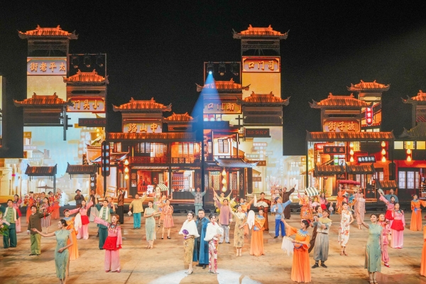 《花开靖港》夜间主秀剧照。(靖港古镇景区供图)