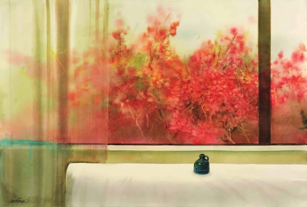 借参会之机,我认真地浏览了张小纲的精作,由此也对画家的境界和表达,有了更广阔的了解。作为水彩画而言,它虽然兴盛于西方,但与中国绘画有着千丝万缕的关联。特别以这种水性颜料为基础的绘画方式,能从中国水墨画中找到相同的理念。如张小纲于2019年的作品《秋赋》,虽然充满西方水彩的情绪,但在色彩和线条上,仍有中国画派的风韵,使作品整体意境有着艺术融合的舒适与满足。