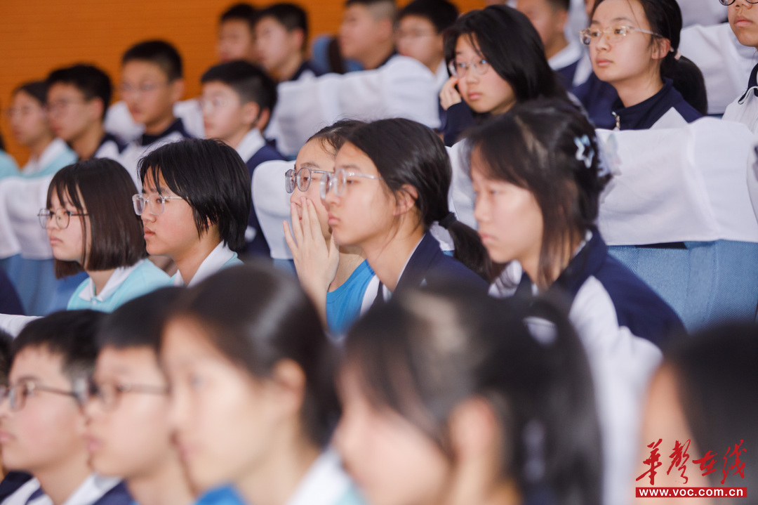“原来陈祥榕哥哥牺牲时,只比我们大五岁!”“我们胸前曾戴着红领巾,就应该熟悉我们中国的科学家,以我们中国的科学家为榜样!”在畅谈感想的环节,初一学生的发言让全场动容。一位女生哽咽道:“以前总觉得英雄遥不可及,今天才明白,榜样就在我们选择的每一份坚持里。”当新青年奋臂高呼“共产主义才能救中国”的画面与戍边战士的雪域身影交叠,当叱咤九天的火箭与“小萝卜头”的半截铅笔同框,学生们眼眶湿润却目光坚定:“我们要做新时代的追光者,让青春在奋斗中闪光!”
