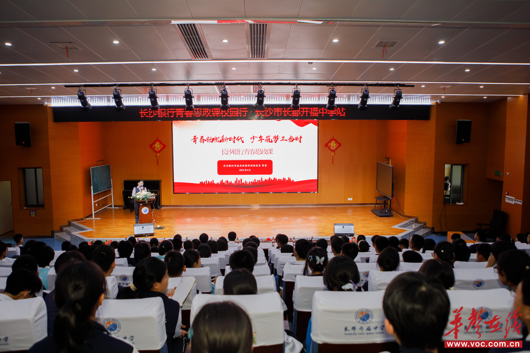 华声在线4月25日讯 为激励青少年厚植家国情怀、勇担时代使命,长沙银行青春思政课校园行于4月23日走进长沙市长郡开福中学,以“青春扬帆新时代 少年筑梦正当时”为主题,为300余名师生呈现了一堂有温度、有力量、有共鸣的思政课。这是一次跨越时空的精神对话,更是一场培根铸魂的青春宣言。