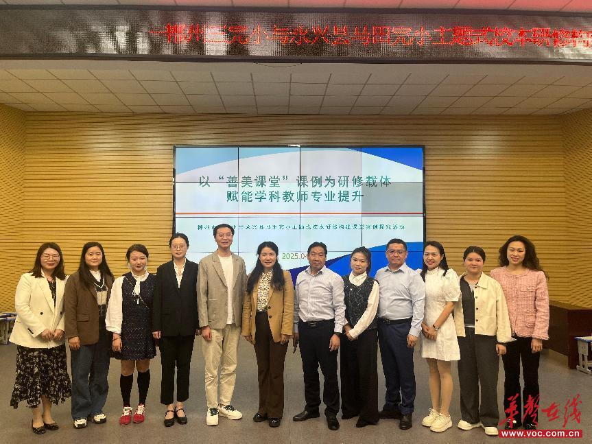 华声在线4月27日讯(通讯员 李飞霞)4月25日,郴州市第三完全小学与永兴县马田镇中心小学联合举办的“善美课堂”课例研修活动成功举行。本次活动以“善美课堂”课例为研修载体,旨在赋能学科教师专业提升,吸引了众多教育工作者参与。