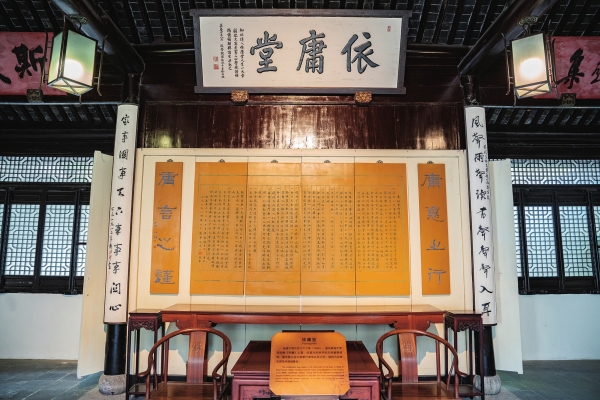 4月11日,江苏省无锡市东林书院依庸堂,楹联“风声雨声读书声,声声入耳;家事国事天下事,事事关心”赫然入目。本版照片均为华声在线全媒体记者 李健 摄金石声站在依庸堂中,朗声诵出这副心中珍藏多年的联,“这副对联应该刻在依庸堂正中间,而不是挂在两边,它有这样的分量!”