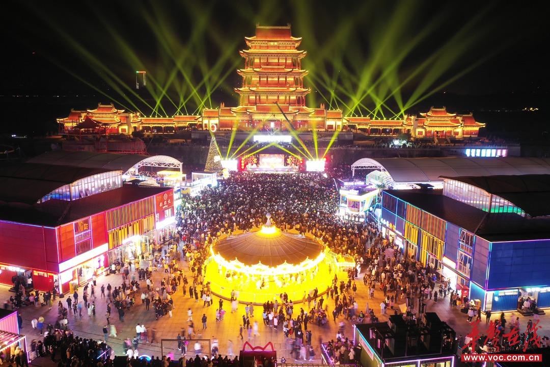 (万楼·芒果青年码头精彩的灯光秀吸引了众多市民游客。方阳 摄)