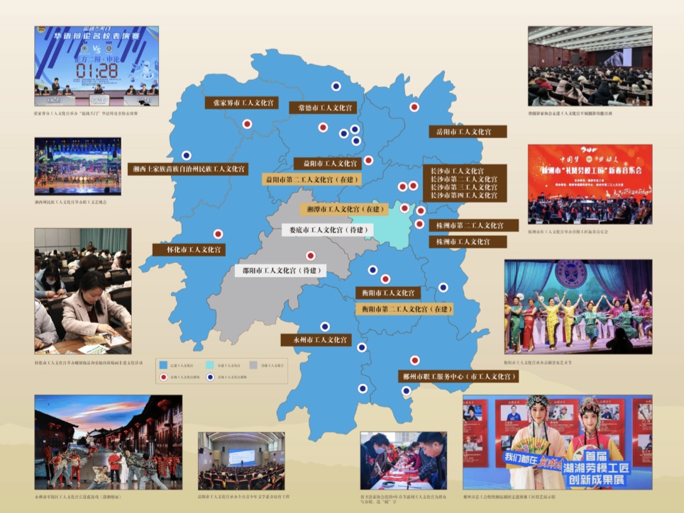 落实《国家公共文化服务保障法》要求,我省将工人文化宫纳入地方公共文化设施,近年来持续推进工人文化宫建设。截至目前,全省有11个市州拥有市级工人文化宫,湘潭市工人文化宫正在建设,邵阳市、娄底市工人文化宫建设列入规划,预计“十五五”期间可实现市州全覆盖。