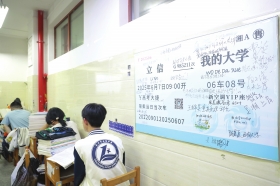 当天下午,该校高二年级组还精心策划了一场祝福行动。课后,高二各班级代表手捧凝聚全班心意的祝福礼物陆续走进高三教室。他们为高三学长学姐写下祝福贺卡,献上深情歌声,还带来一幅幅亲手绘制的励志海报和一段段提前录制的加油视频。