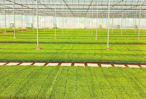 常德市鼎城区石公桥镇三兴村集中育秧大棚,秧苗健壮,生机盎然。(资料图片)通讯员 摄